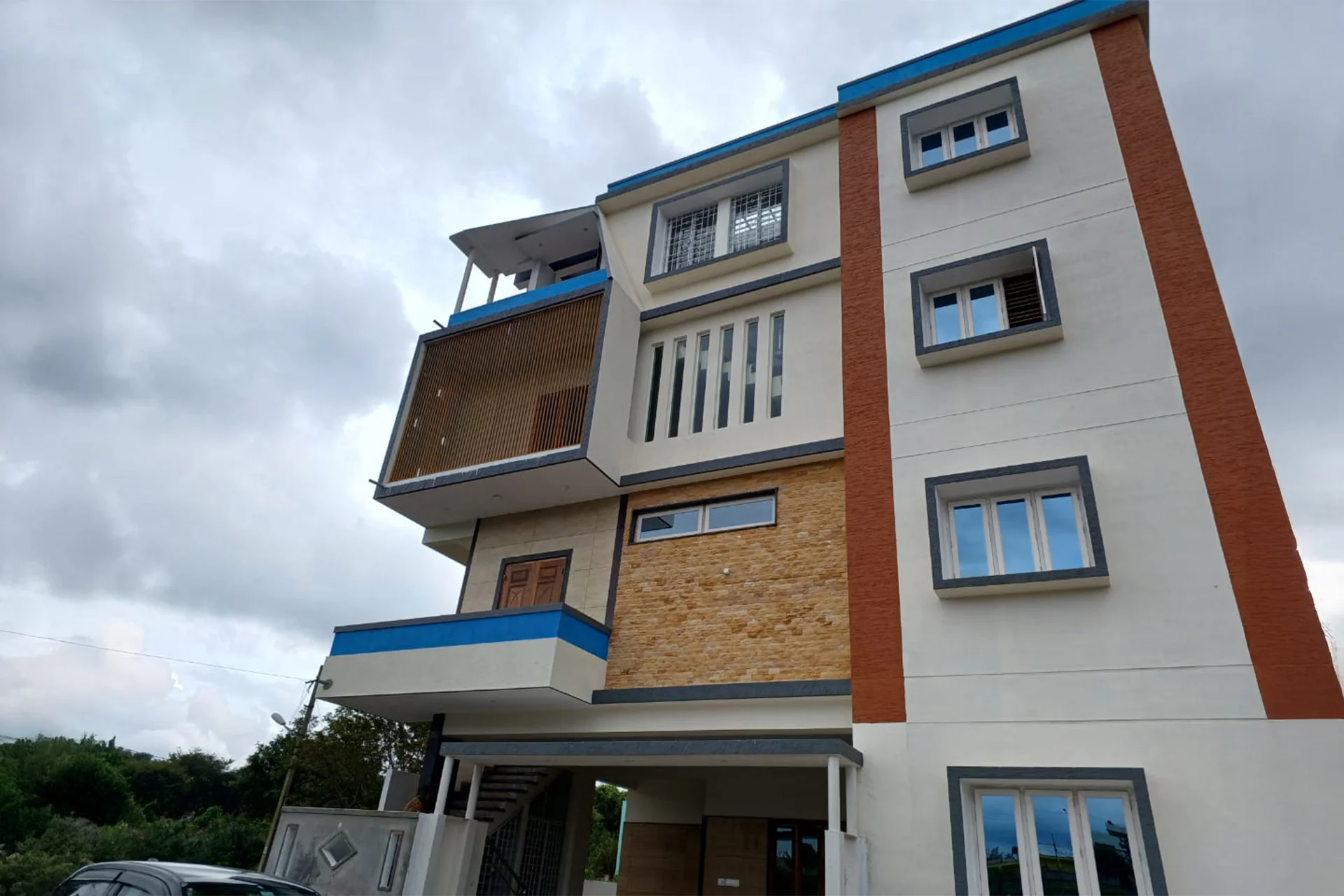 Shree Residency is a beautifully crafted residential building located in the growing and peaceful locality of Muddin Palya, Bangalore. Spanning 4,500 sq. ft. with a project value of ₹1.25 crore, this residence stands out for its elegant design and thoughtful execution. Constructed by SKBE UniQhomes, the project was brought to life with the structural expertise of Mr. Lakshmeesh Bhat Kodla, ensuring both safety and long-lasting durability alongside modern aesthetics.